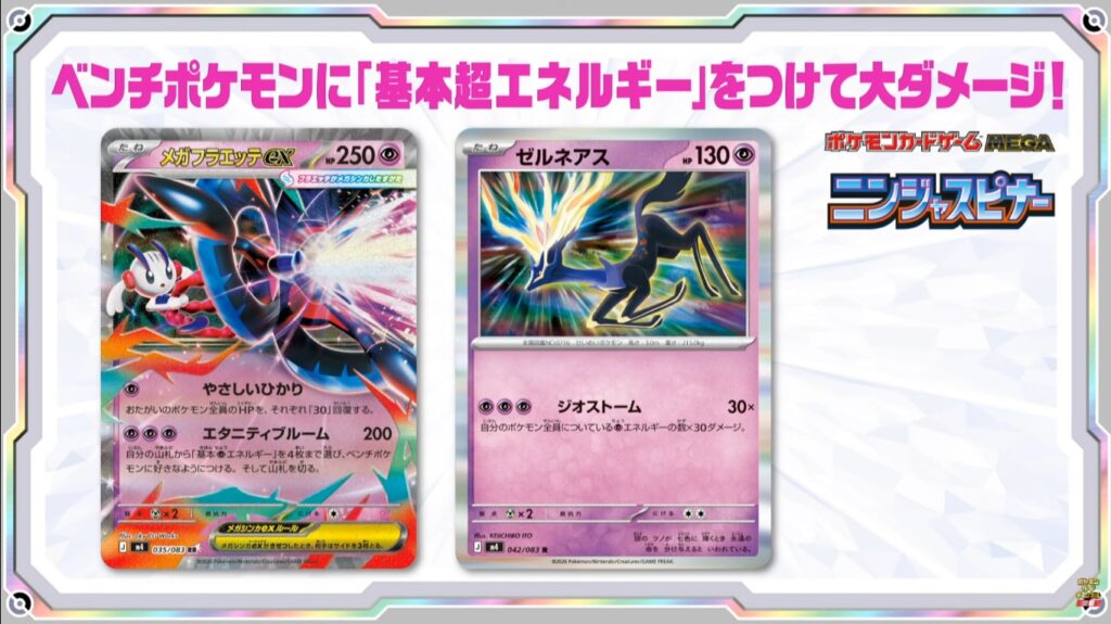 こちらも超エネ3つと重いですが、自分のポケモンについている超エネルギーの数×30ダメージと、メガフラエッテexのワザと相性抜群!