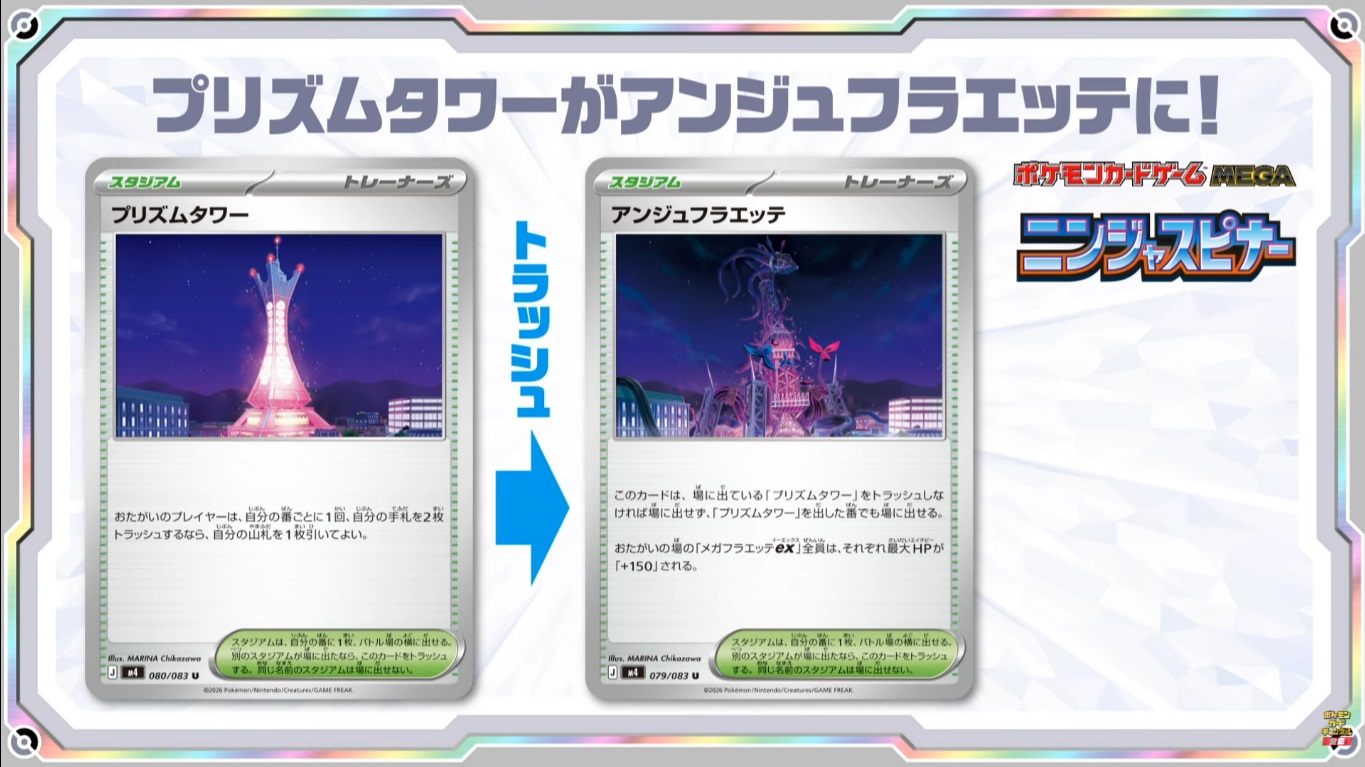 スタジアムは通常出したばかりの番に張り替えるのはできませんが、アンジュフラエッテはプリズムタワーを出した番にも張り替えられるという破格な性能!