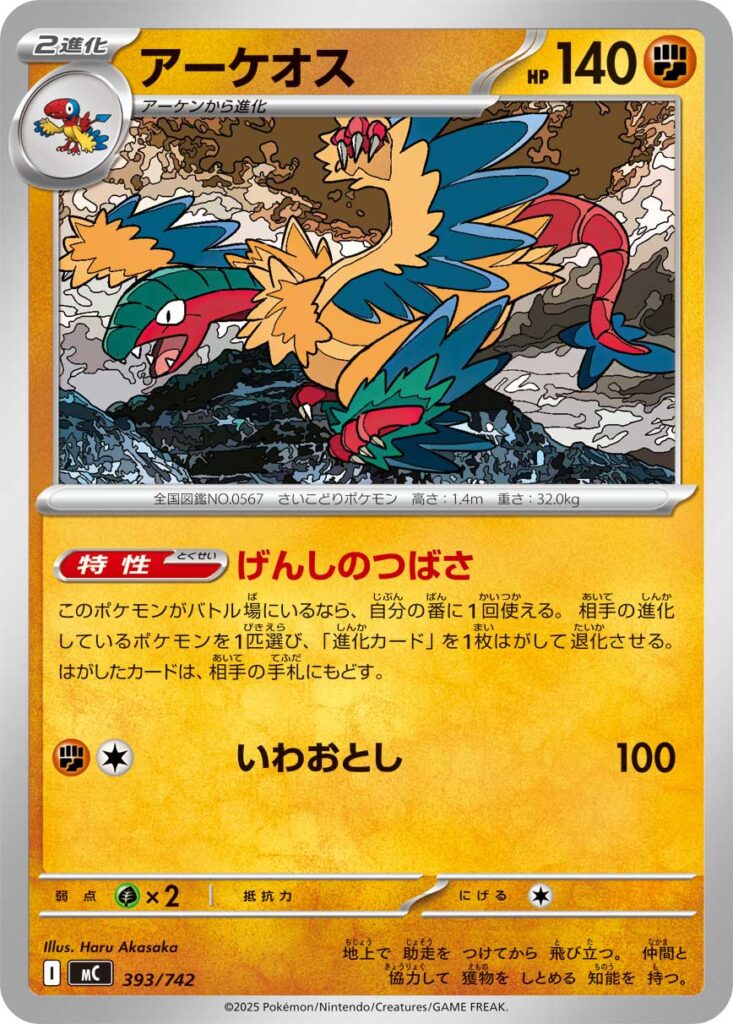 アーケオスは特性「げんしのつばさ」でバトル場にいるなら相手の進化ポケモンを手札に戻すことができます!