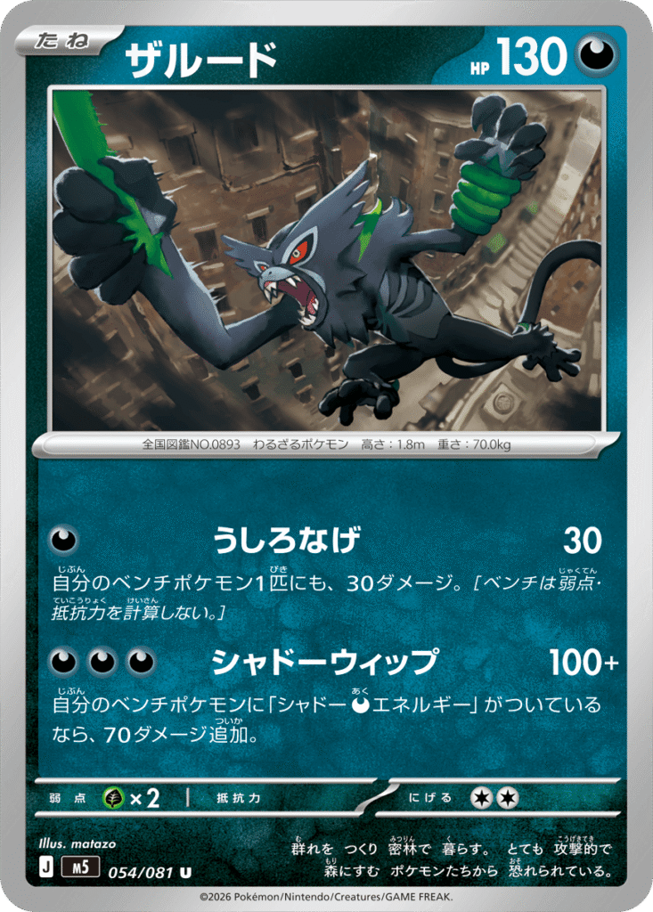 さらに下ワザが悪エネ3個と重いですが、素点100ダメージに条件を満たせば170ダメージ出せる非ルールのたねポケモンとしては破格のワザを持っています!